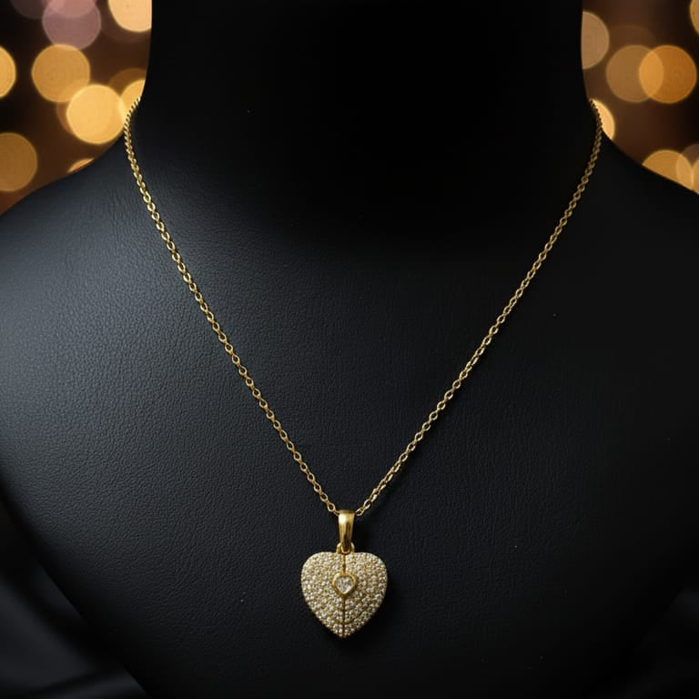 Elevate your everyday style with this luxurious gold-plated heart pendant necklace, designed to add a touch of elegance to any outfit. Featuring brilliant zircon stones set in a sparkling heart charm, this necklace reflects beauty, finesse, and timeless femininity.